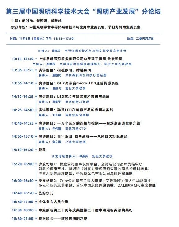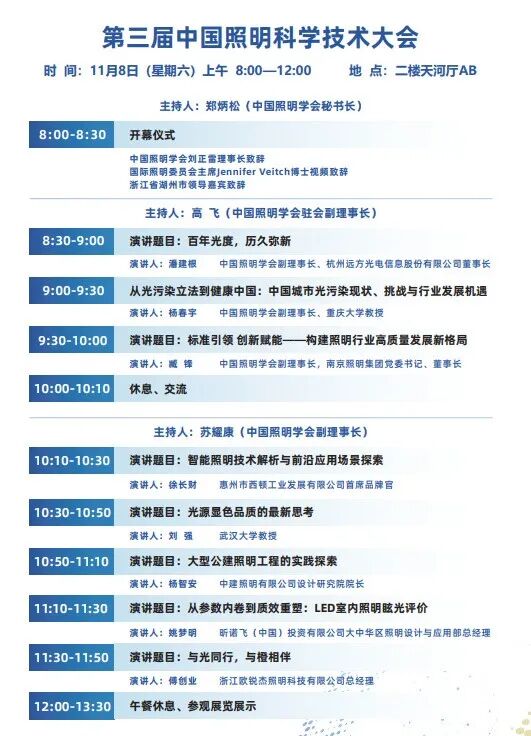 第三届中国照明科学技术大会即将开幕,日程安排如下(如有调整,以现场安排为准)。