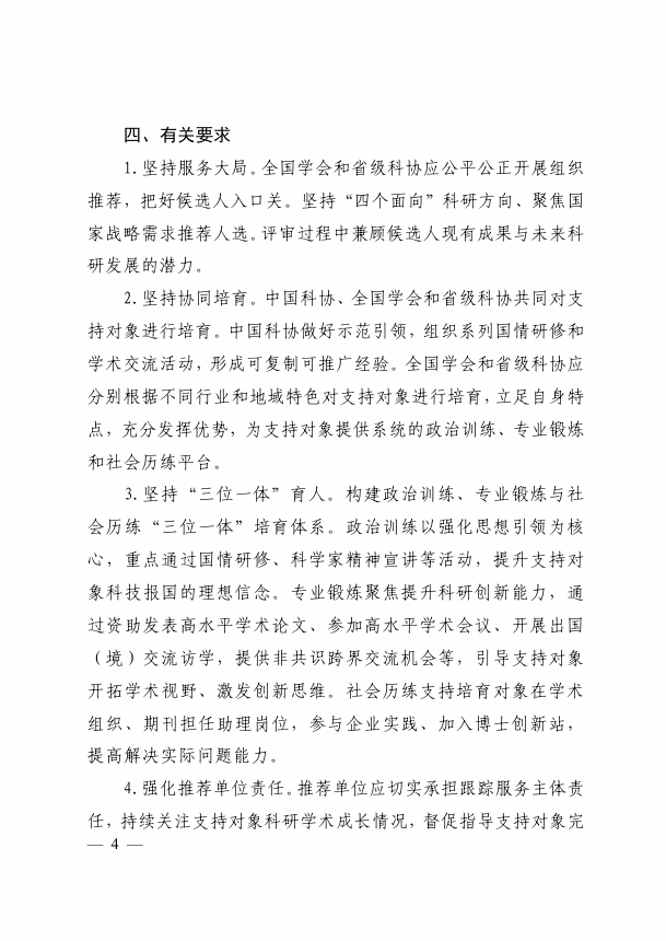 各分支机构、单位会员,在读博士生: 根据《中国科协办公厅关于启动2025年中国科协青年科技人才培育工程博士生专项计划的通知》(科协办发组字2025[32]号),中国照明学会现开展2025年中国科协青年科技人才培育工程博士生专项计划候选人推荐工作。有关事项通知如下: 一、支持对象 本计划支持对象为具有中国国籍、年龄不超过30周岁的全日制在读博士研究生,原则上距离毕业时间在2年以上。需满足以下核心条件: 1. 热爱祖国、遵纪守法,具有良好的政治素质和家国情怀,无品德失范、违纪违法等问题。 2. 勤奋好学、学风正派,无学术不端行为,有志于长期从事科技工作。 3. 博士与硕士阶段科研方向具有延续性、相关性或学科交叉性,所学专业聚焦光与照明及其相关领域。 4. 成为中国照明学会个人会员。加入中国照明学会会员的流程,请关注中国照明学会官方网站(www.cies.ac.cn)“我要入会”专栏,或者中国照明学会微信公众号(CIES1987)“加入学会”专栏。 二、推荐渠道和名额 请各分支机构、单位会员积极推荐人选,直接向学会推荐。在读博士生也可以直接向学会自荐。请于2025年11月20日前将《中国科协青年科技人才培育工程博士生专项计划推荐表》(见附件1)发送到学会邮箱cies19870601@163.com,注明:“2025年中国科协青年科技人才培育工程博士生专项计划 - 推荐/自荐”。 中国照明学会可推荐3名候选人至中国科协。 三、推荐程序和时间安排 1. 候选人申报:2025年11月20日前,候选人访问“中国科协青年科技人才培育工程博士生专项计划服务平台”(http://kecaihui-tm-zz.cast.org.cn/match-page/qtgc),注册账号并登录,选择“申报人”角色,在线填写《中国科协青年科技人才培育工程博士生专项计划推荐表》并上传有关附件材料。 通过学会渠道申报的候选人,“推荐渠道类型”请选择“全国学会推荐”,“推荐渠道”和“第一意向培育学会”请选择“工科学会/中国照明学会”。 2. 推荐上报:2025年11月29日前,中国照明学会在线审核候选人材料,确定拟推荐上报人选。 3. 确定匹配:中国科协审核全国学会和省级科协上报的推荐名单并初步匹配负责培育服务的全国学会,结合全国学会意见确定最终培育对象名单。 四、联系方式 1. 中国照明学会秘书处 联系人:朱思贤 电 话:010-65812194 2. 填报系统技术支持 联 系 人:姚晓洁、刘洪宇、冯丙文 联系电话:010-62165285、62165293 附件: 1.中国科协青年科技人才培育工程博士生专项计划推荐表.docx 2.中国科协办公厅关于启动2025年中国科协青年科技人才培育工程博士生专项计划的通知(科协办发组字202532号).pdf 中国照明学会 2025年10月31日