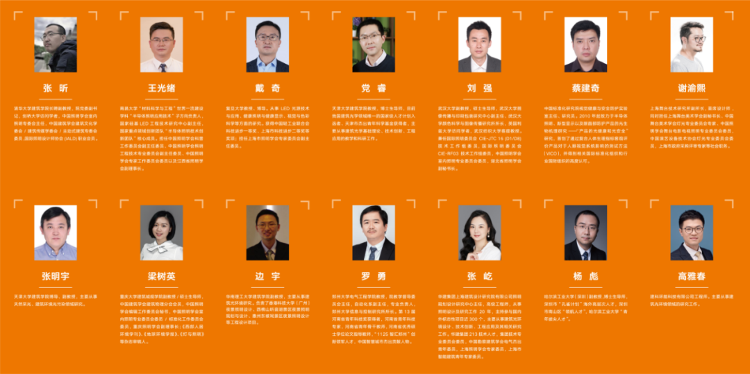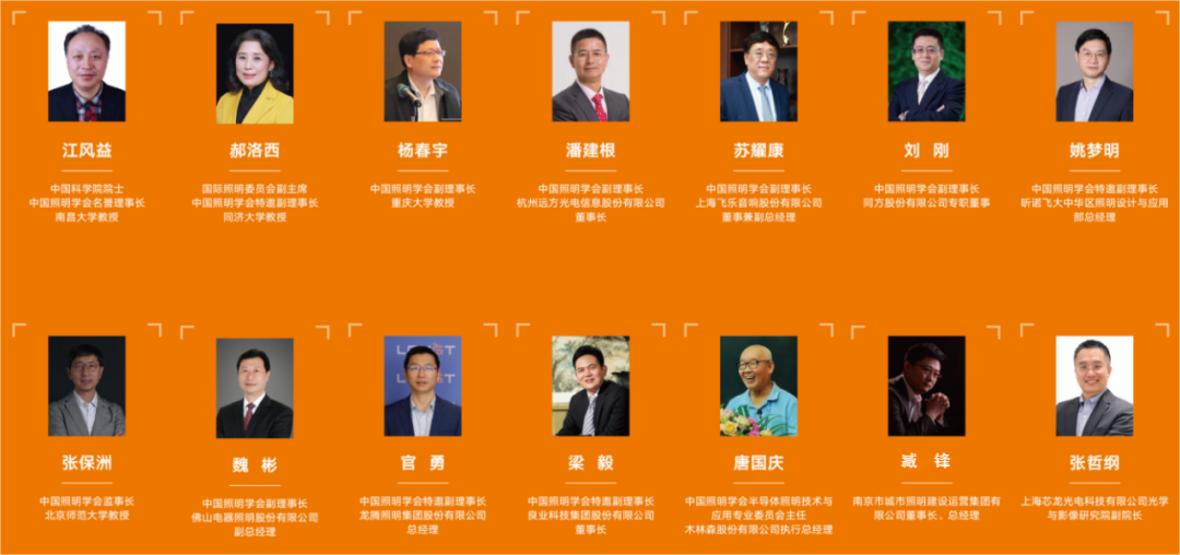 中国科学院院士、南昌大学副校长江风益教授,国际照明委员会副主席、同济大学郝洛西教授,重庆大学杨春宇教授,杭州远方光电信息股份有限公司董事长潘建根,上海亚明照明有限公司总经理苏耀康,佛山电器照明股份有限公司副总经理魏彬,同方股份有限公司专职董事刘刚,昕诺飞大中华区照明设计与应用部总经理姚梦明,良业科技集团股份有限公司董事长梁毅,龙腾照明集团股份有限公司总经理官勇,北京师范大学张保洲教授,木林森股份有限公司执行总经理唐国庆,南京市城市照明建设运营集团有限公司党委书记、董事长臧锋,上海芯龙光电科技股份有限公司光学与影像研究院副院长张哲纲,担任本次论坛专家团专家。
