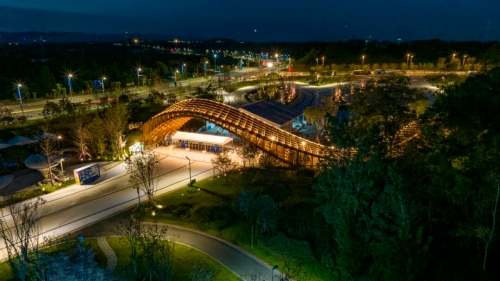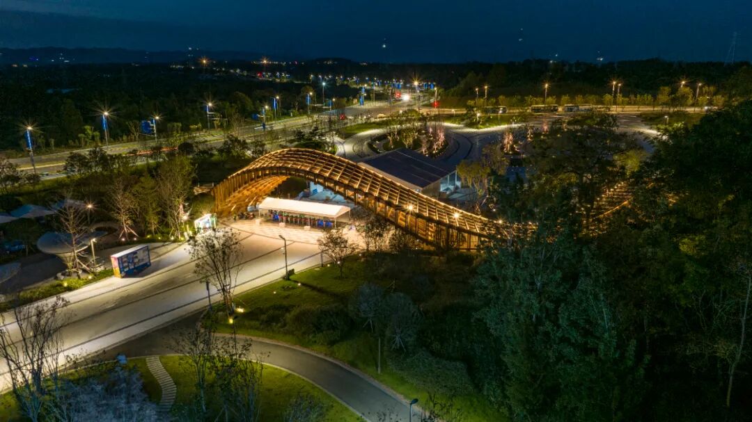 依托绛溪河构建水陆双线夜游体系,深度激活园区夜间经济,从串联河岸节点、树木、桥梁与建筑,结合水幕秀、瀑布、市集等,打造“夜市、夜食、夜展、夜秀”多元场景。据统计,世园会累计入园游客数量突破1000万人次,带动周边社区夜间消费增长200%。
